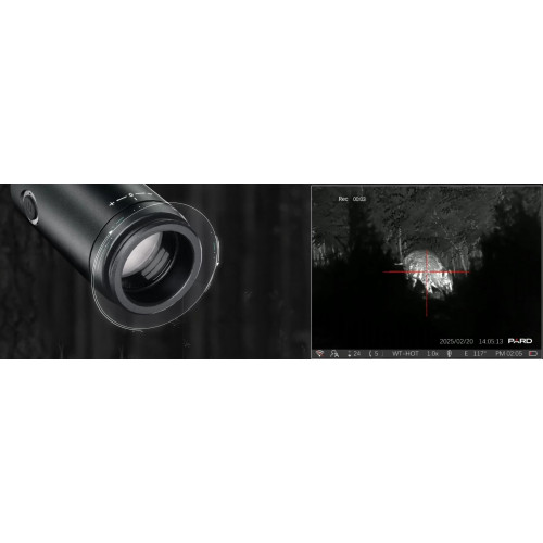 Kompaktný termovízny puškohľad s citlivým senzorom 256×192 VOx (NETD ≤25mK), ktorý poskytuje čistý a detailný obraz aj v horších podmienkach. Vďaka 25mm objektívu, detekčnej vzdialenosti až 1200 m a digitálnemu zoomu 8× spoľahlivo identifikujete zver na krátke aj stredné vzdialenosti. Robustná konštrukcia IP67 a praktické funkcie ako PIP, Hot Track, gyroskop alebo nahrávanie výstrelov z neho robia výkonného a cenovo dostupného spoločníka pre lov aj nočné dohľady.